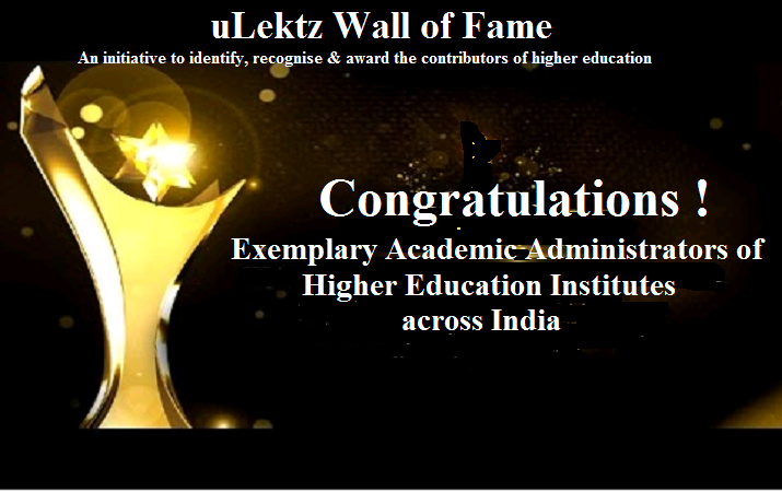 View More uLektz Wall of Fame is proud to announce Exemplary Academic Administrators of Higher Education Institutes across India for the year 2019